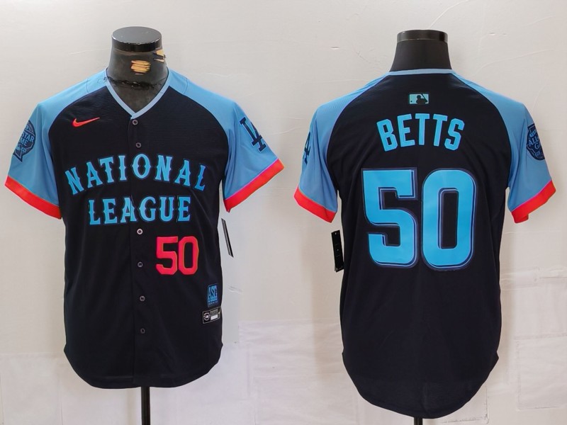 Men’s National League #50 Mookie Betts Navy 2024 All-Star Limited Stitched Baseball Jersey