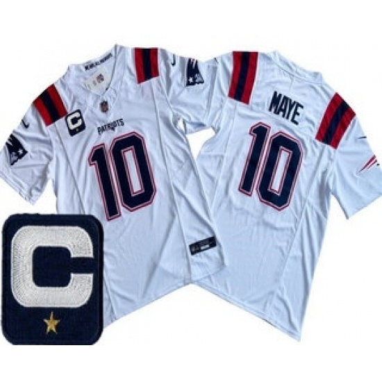 Men’s New England Patriots #10 Drake Maye Limited White Captain FUSE Vapor Jersey