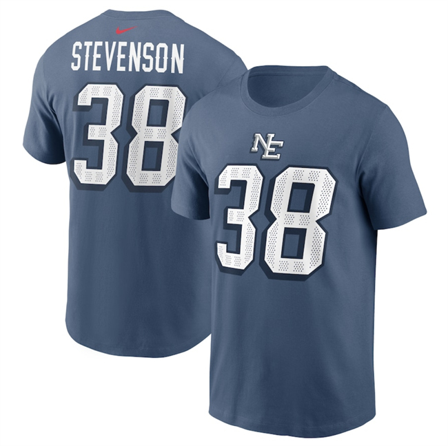 Men’s New England Patriots #38 Rhamondre Stevenson Blue 2025 Rivalries Collection Player Name & Number T-Shirt