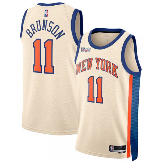 Men’s New Yok Knicks #11 Jalen Brunson Cream 2025-26 City Edition Swingman Stitched Basketball Jersey