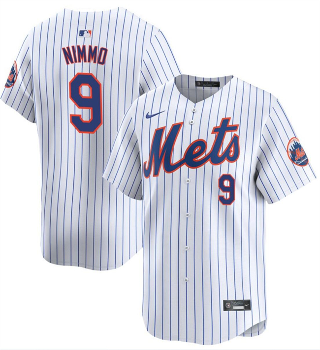 Men’s New York Mets #9 Brandon Nimmo White 2024 Home Limited Stitched Baseball Jersey