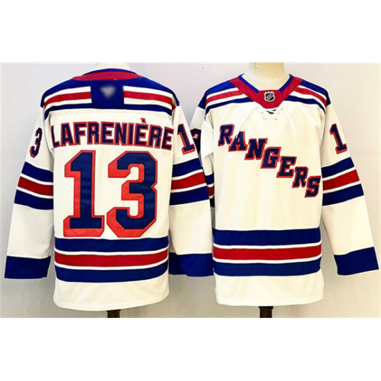 Men’s New York Rangers #13 Alexis Lafreniere White 2024-25 Away Stitched Hockey Jersey