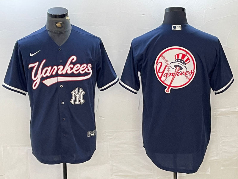 Men’s New York Yankees Big LOGO Navy Cool Base Stitched Baseball Jersey