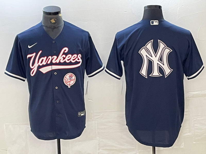 Men’s New York Yankees Big LOGO Navy Cool Base Stitched Baseball Jersey