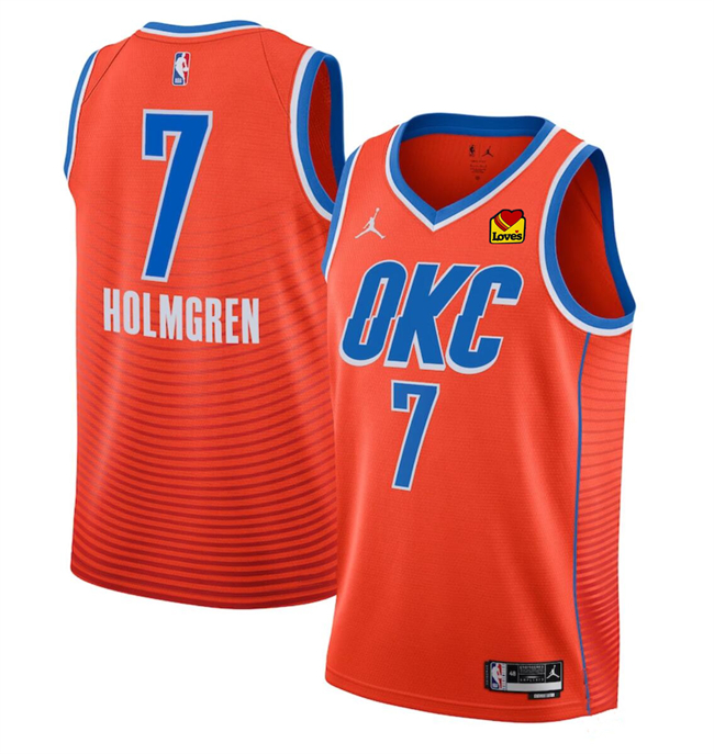 Men’s Oklahoma City Thunder #7 Chet Holmgren Orange Statement Edition Stitched Basketball Jersey