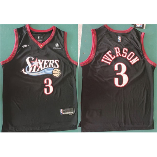 Men’s Philadelphia 76ers #3 Allen Iverson Black 2025 Classic Edition Stitched Stitched Jersey