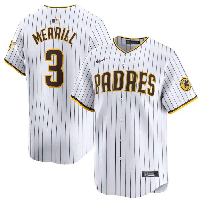 Men’s San Diego Padres #3 Jackson Merrill White 2024 Home Limited Stitched Baseball Jersey