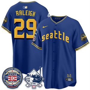 Men’s Seattle Mariners #29 Cal Raleigh Ichiro Number Retirement Jersey V2 All Stitched