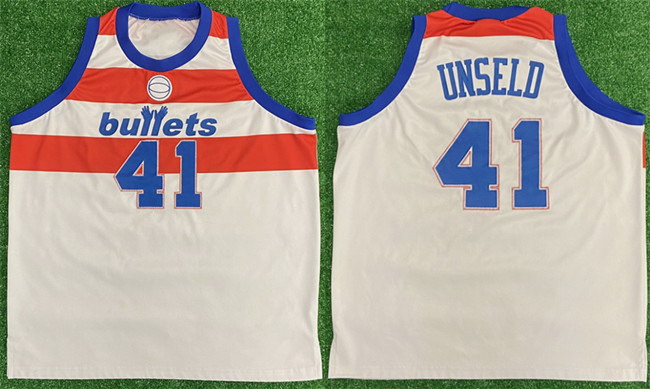 Men’s Washington Bullets #41 Wes Unseld White Stitched Basketball Jersey