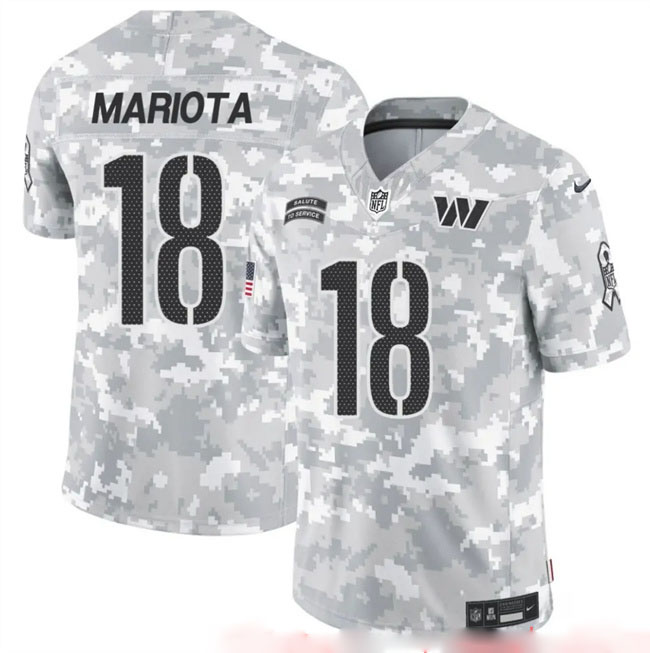 Men’s Washington Commanders #18 Marcus Mariota 2024 F.U.S.E Arctic Camo Salute To Service Limited Stitched Football Jersey