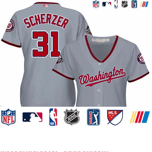 Nationals #31 Max Scherzer Grey Road 2019 World Series Bound Women’s Stitched Baseball Jersey