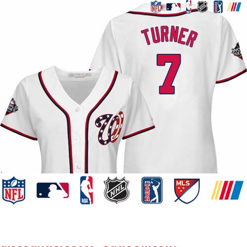 Nationals #7 Trea Turner White Home 2019 World Series Bound Women’s Stitched Baseball Jersey