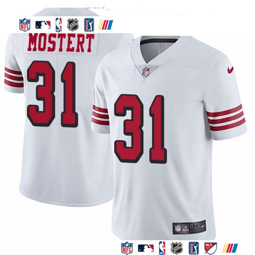 Nike 49ers #31 Raheem Mostert White Men’s Stitched NFL Limited Rush Jersey