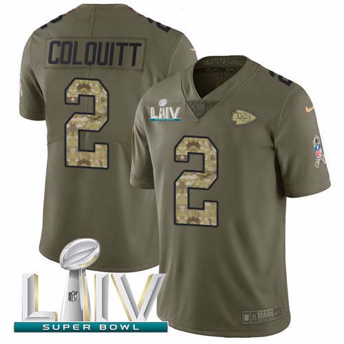 Nike Chiefs #2 Dustin Colquitt Olive Camo Super Bowl LIV 2020 Men’s Stitched NFL Limited 2017 Salute To Service Jersey
