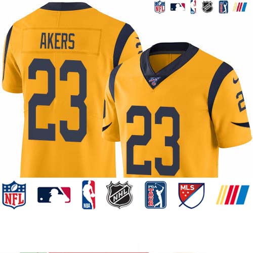 Nike Rams #23 Cam Akers Gold Men’s Stitched NFL Limited Rush 100th Season Jersey