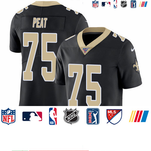 Nike Saints #75 Andrus Peat Black Team Color Men’s Stitched NFL 100th Season Vapor Untouchable Limited Jersey