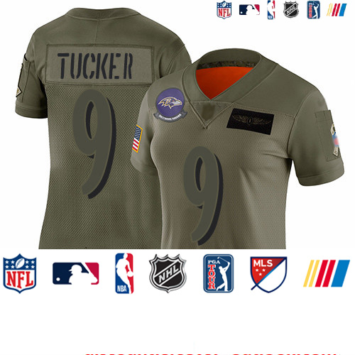 Ravens #9 Justin Tucker Camo Women’s Stitched Football Limited 2019 Salute to Service Jersey