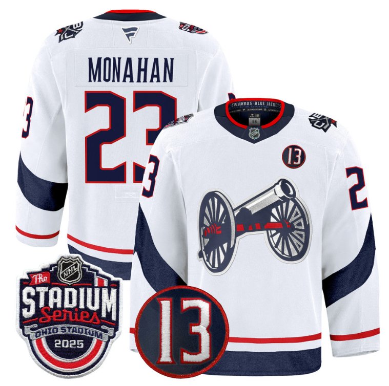 Sean Monahan Jersey #23 Columbus Blue Jackets 2025 Stadium Series White