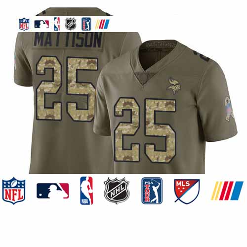 Vikings #25 Alexander Mattison Olive Camo Men’s Stitched Football Limited 2017 Salute To Service Jersey