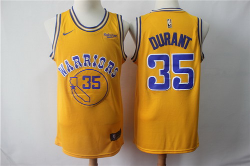 Warriors 35 Kevin Durant Gold Nike Swingman Jersey