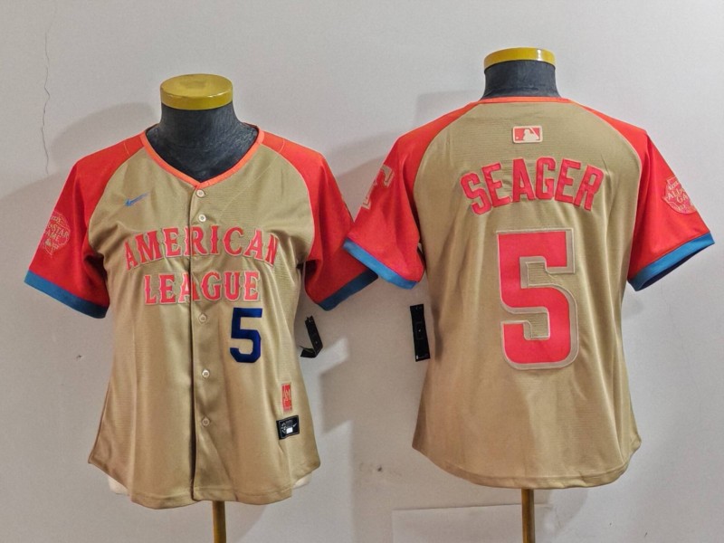 Women’s American League #5 Corey Seager Cream 2024 All-Star Limited Stitched Baseball Jersey(Run Small)