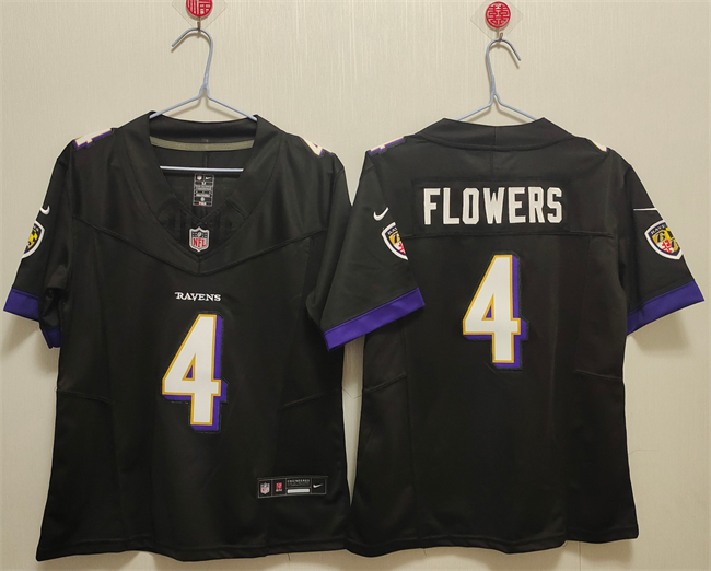 Women’s Baltimore Ravens #4 Zay Flowers Black Vapor Football Jersey(Run Small)