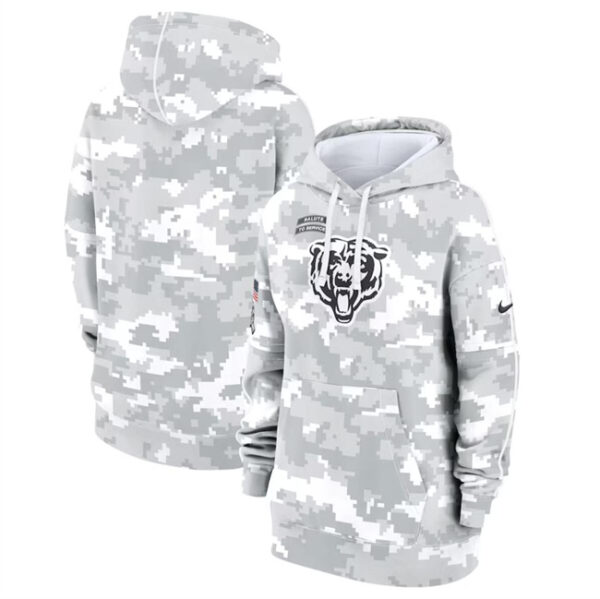 Women’s Chicago Bears 2024 Arctic Camo Salute To Service Club Fleece Pullover Hoodie(Run Small)