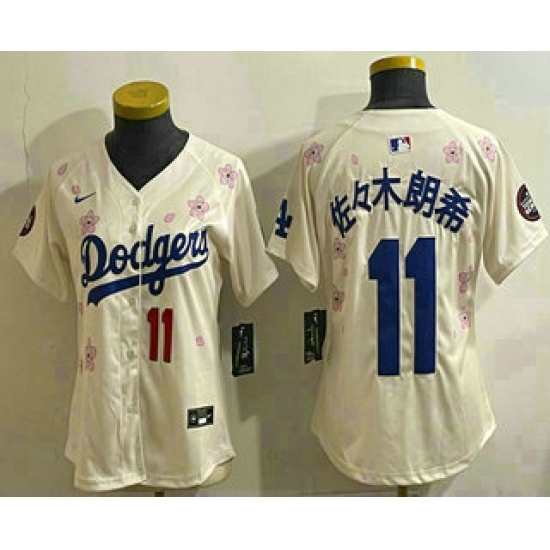 Women’s Los Angeles Dodgers #11 Roki Sasaki Cream Japanese 2025 Tokyo Series Limited Jersey