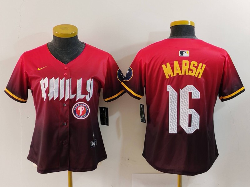 Women’s Philadelphia Phillies #16 Brandon Marsh Red 2024 City Connect Limited Stitched Baseball Jerseys