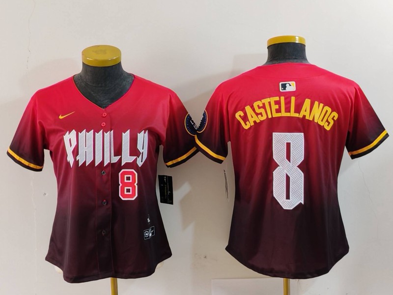 Women’s Philadelphia Phillies #8 Nick Castellanos Red 2024 City Connect Limited Stitched Baseball Jerseys