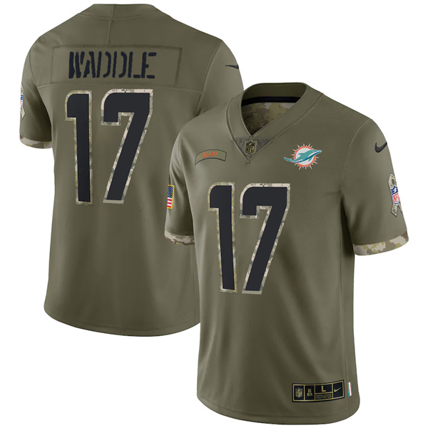 Youth Jaylen Waddle Miami Dolphins Olive 2022 Salute To Service Jersey Stitched