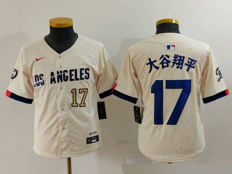 Youth Los Angeles Dodgers #17 大谷翔平 Cream Stitched Baseball Jerseys