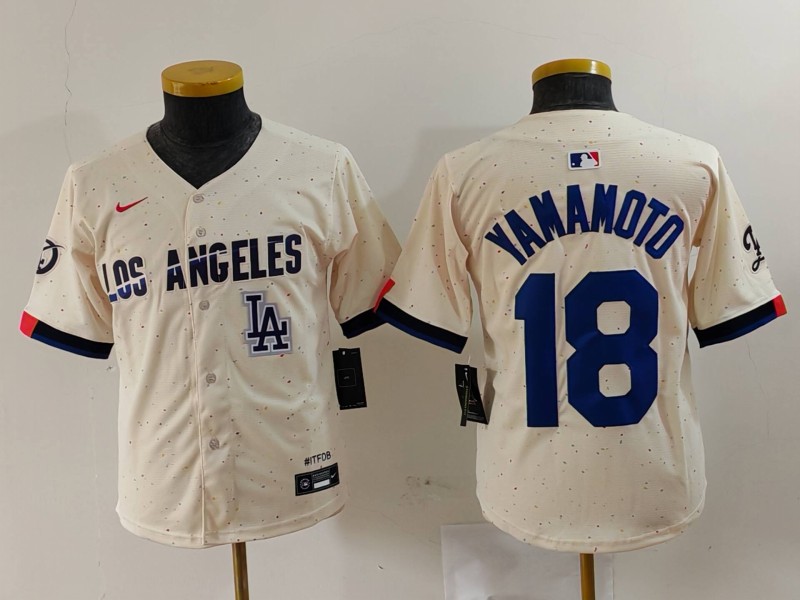 Youth Los Angeles Dodgers #18 Yoshinobu Yamamoto Cream Stitched Baseball Jerseys