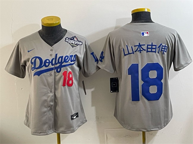 Youth Los Angeles Dodgers #18 Yoshinobu Yamamoto Grey 2025 World Series Patch Limited Stitched Baseball Jersey