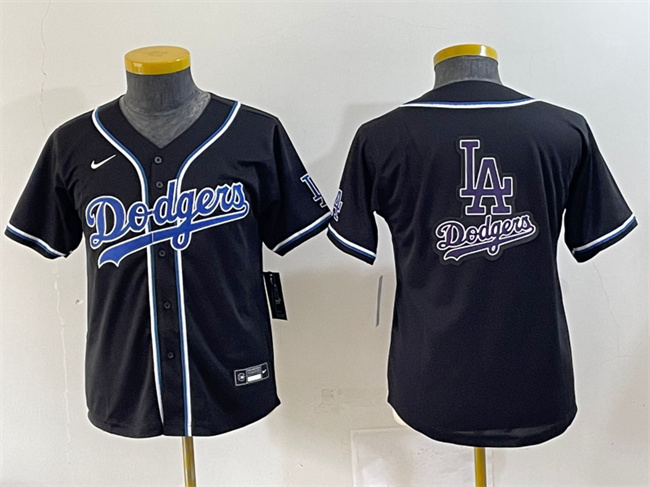 Youth Los Angeles Dodgers Team Big Logo Black Stitched Baseball Jersey
