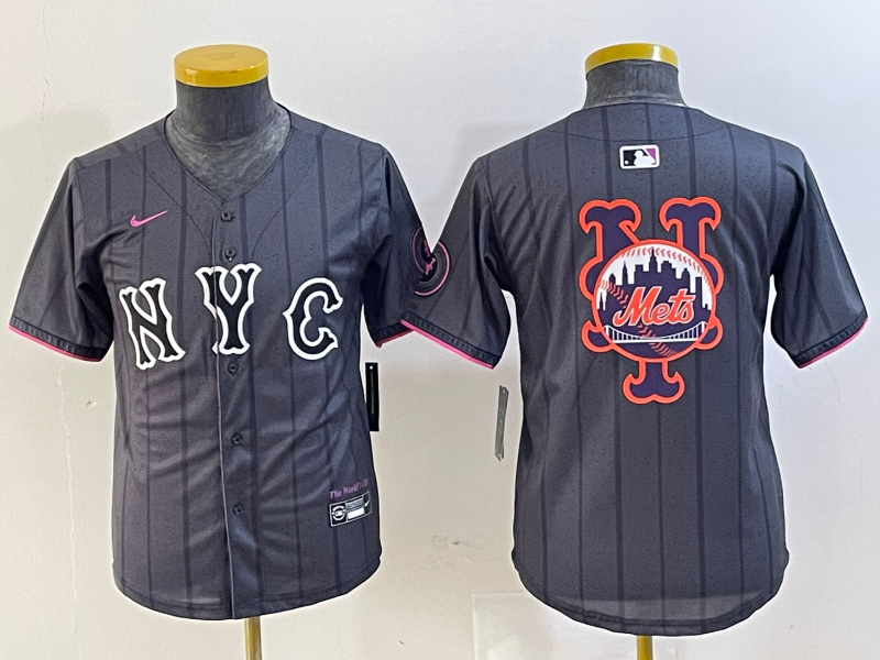 Youth New York Mets Team Big Logo Graphite 2024 City Connect Limited Stitched Baseball Jersey