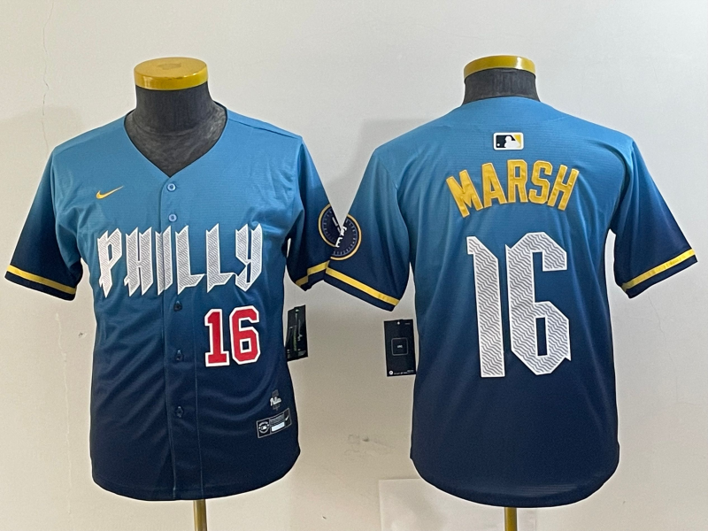Youth Philadelphia Phillies #16 Brandon Marsh Blue 2024 City Connect Limited Stitched Jersey