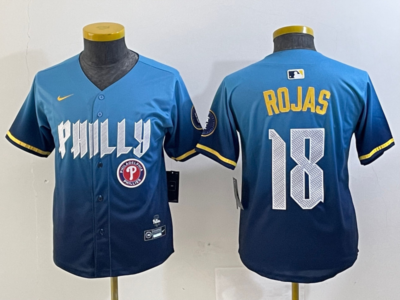 Youth Philadelphia Phillies #18 Johan Rojas Blue 2024 City Connect Limited Stitched jerseys 3