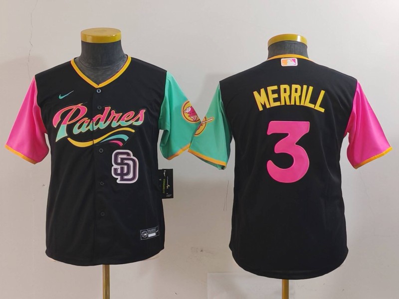 Youth San Diego Padres #3 Jackson Merrill Black City Connect Stitched Baseball Jersey(Run Small)