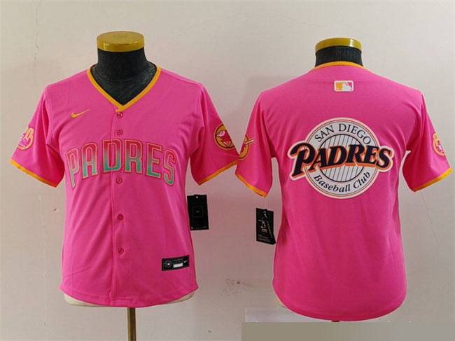Youth San Diego Padres Team Big Logo Pink Stitched Baseball Jerseys