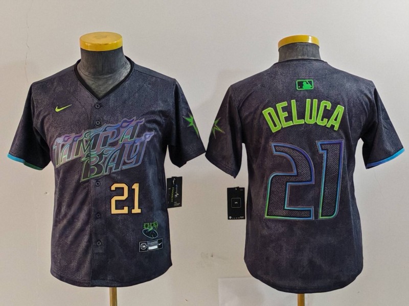 Youth Tampa Bay Rays #21 Jonny DeLuca Charcoal 2024 City Connect Limited Stitched Baseball Jerseys